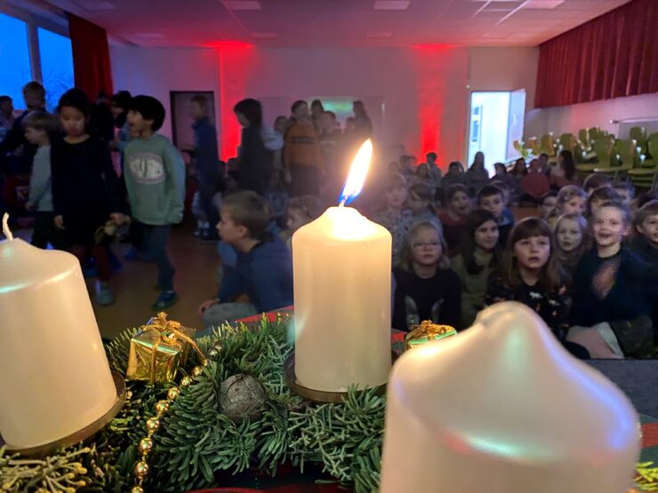 Am Montag nach dem 1. Advent gab es die Premiere in der Aula. Musikalisch begleitet von einigen Lehrerinnen und Lehrern sangen alle gemeinsam mehrere Advents- und Weihnachtslieder, bevor die Woche mit dem Unterricht in den Klassen begann. Auch an den nächsten Montagen singen wir wieder in der Aula.
