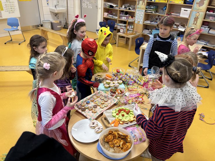 Karneval am Rosenmontag in der Heilig-Geist-Schule: In den ersten beiden Stunden feierten die Klassen im jeweiligen Klassenraum. Viele Spiele, Musik und ein süßes Büfett oder Brötchenfrühstück durften hierbei natürlich nicht fehlen.