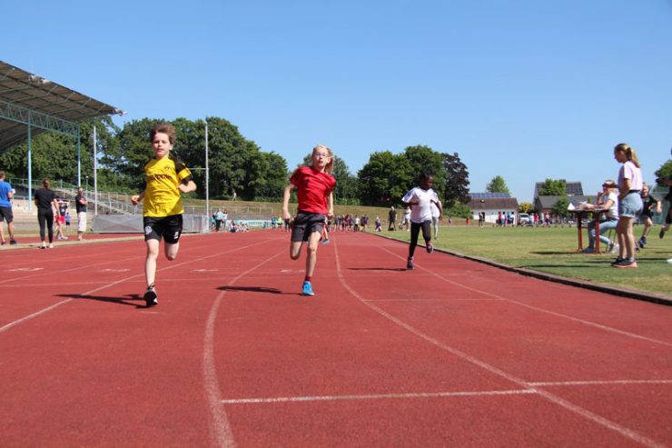 Anschließend begann der größte Wettkampf des Tages, der Dreikampf. 5 Mädchen und 5 Jungen traten in folgenden Disziplinen an: 50-Meter-Sprint oder 800/1000 Meter-Lauf, Weitsprung und Weitwurf. Die Dreikämpfer zeigten super Leistungen, einige übertrafen noch ihre tollen Ergebnisse der Bundesjugendspiele. So wurden unglaubliche 839 Punkte erreicht (4 Jungen und 4 Mädchen kommen in die Wertung) und das bedeutete den Sieg mit 65 Punkten Vorsprung vor der Grundschule Hellern. 2019 hatten noch 805 Punkte zum Sieg gereicht. Es ist also ein unglaublich gutes Ergebnis. Riesengroß war der Jubel bei der Siegerehrung, als bei der Nennung jeder weiteren Schule irgendwann klar war, dass es für einen Platz unter den Top-3 reichte und es dann noch besser wurde (siehe Bildergalerie).