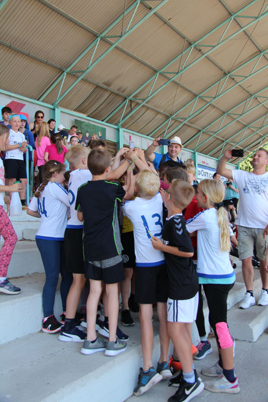 Beeindruckend war neben den sportlichen Leistungen auch der Zusammenhalt und das gegenseitige Anfeuern, das mit Sicherheit einige Sekunden bzw. Zentimeter brachte. Ein besonderes Highlight – vor allem für die Jungs – war das Erscheinen einer VFL-Trainingsgruppe, die natürlich viele Autogramme auf allen möglichen Klamotten unterschreiben musste.