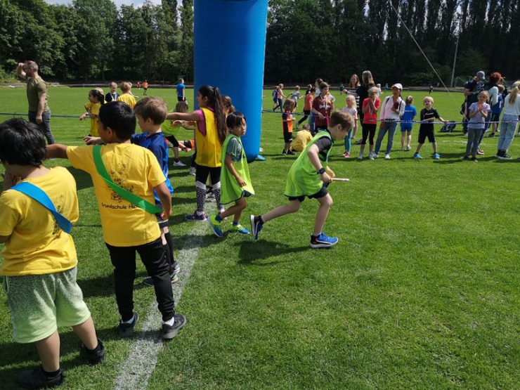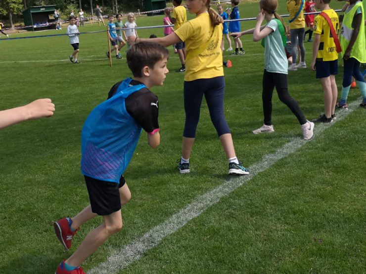 Die Einteilung der einzelnen Staffeln stellte sich als etwas schwierig dar, weil einige Kinder spontan dazugekommen waren und einige spontan auch nicht kommen konnten. Wenn nun also die Zahl der Drittklässler z.B. nicht durch vier teilbar war, musste spontan entschieden werden, welches Kind wann doppelt läuft. Das war natürlich richtig anstrengend. So kam es, dass ein Kind (Fiete) sogar in zwei verschiedenen Staffeln im selben Lauf antreten musste und dazwischen nur eine Runde Pause hatte. Eine der Staffeln, in der er mitgelaufen ist, hat sogar gewonnen. Das hat bei anderen Kindern bei der Siegerehrung verständlicherweise für etwas Verwirrung gesorgt. Auch bei den Viert- und Erstklässlern gewann eine unserer Staffeln und es gab viele weitere tolle 2., 3., 4. Und 5. Plätze. Auch bei der siegreichen Staffel der Erstklässler*innen musste ein Kind (Rosa) doppelt laufen. Eine weitere Besonderheit: Es war eine reine Mädchen-Staffel. Falls jemand noch einen Beweis dafür benötigt: Mädchen sind genauso sportlich wie Jungen! 🙂